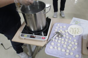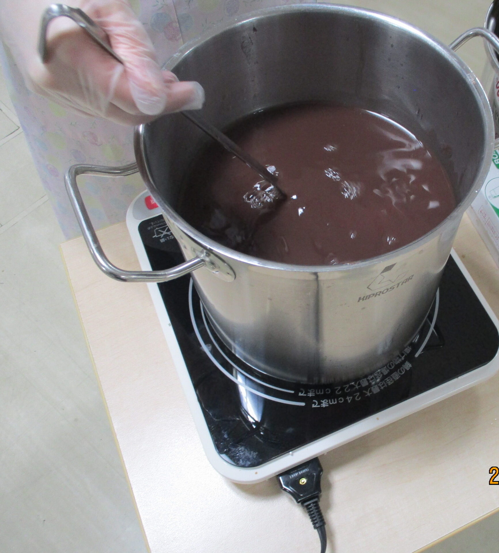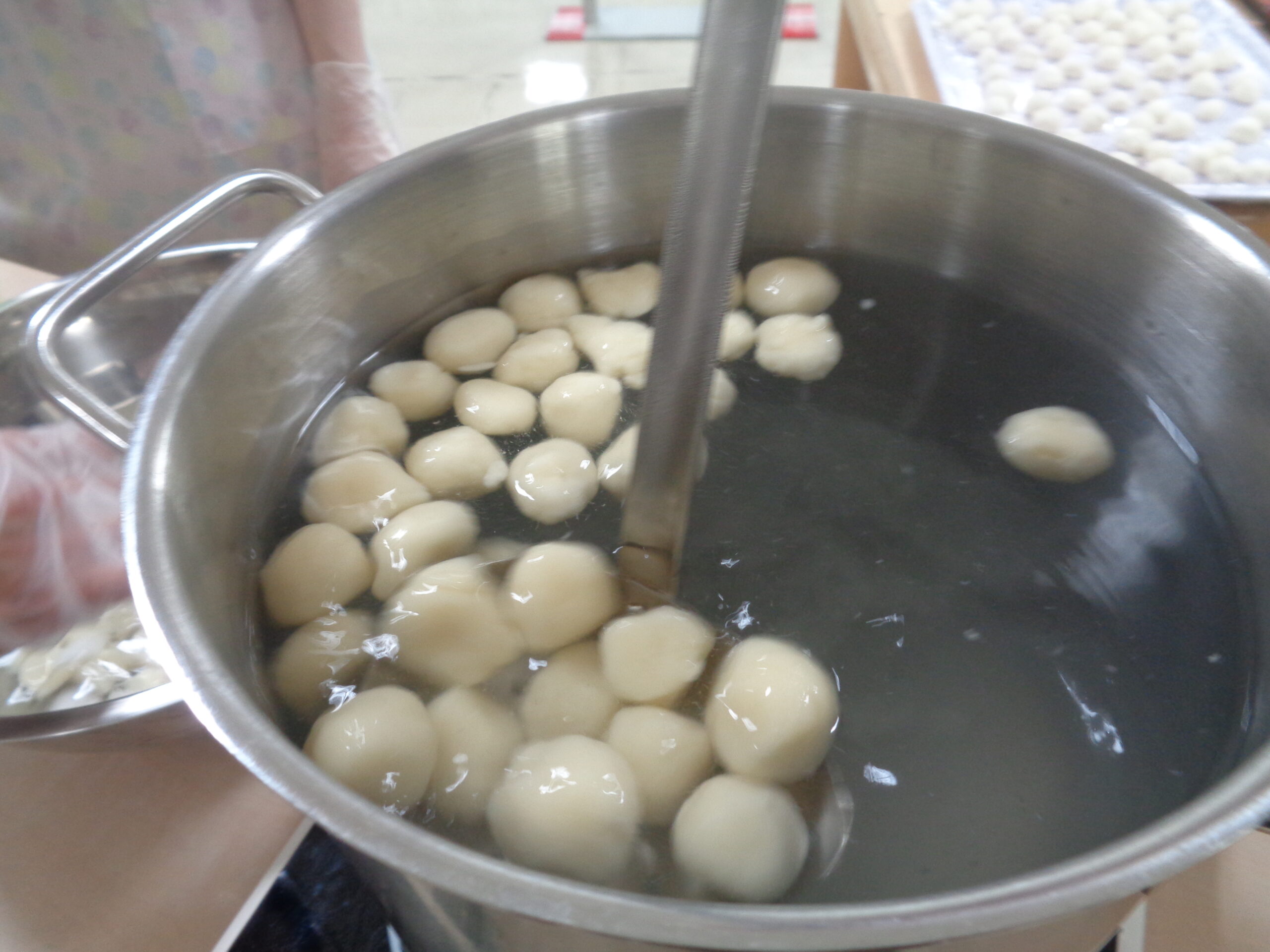 皆さんで白玉を丸め終わった後に、職員がおしるこを調理いたしました。