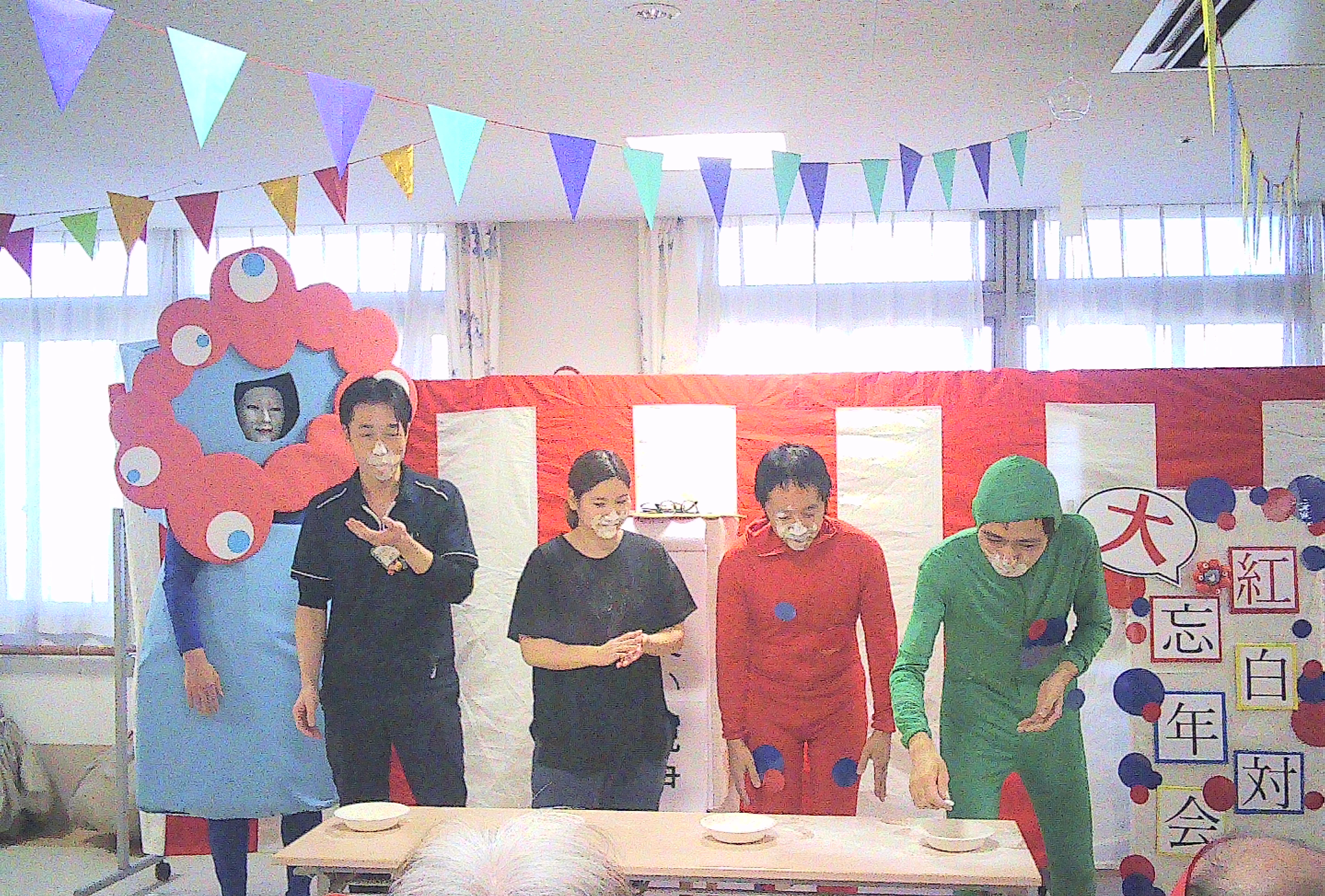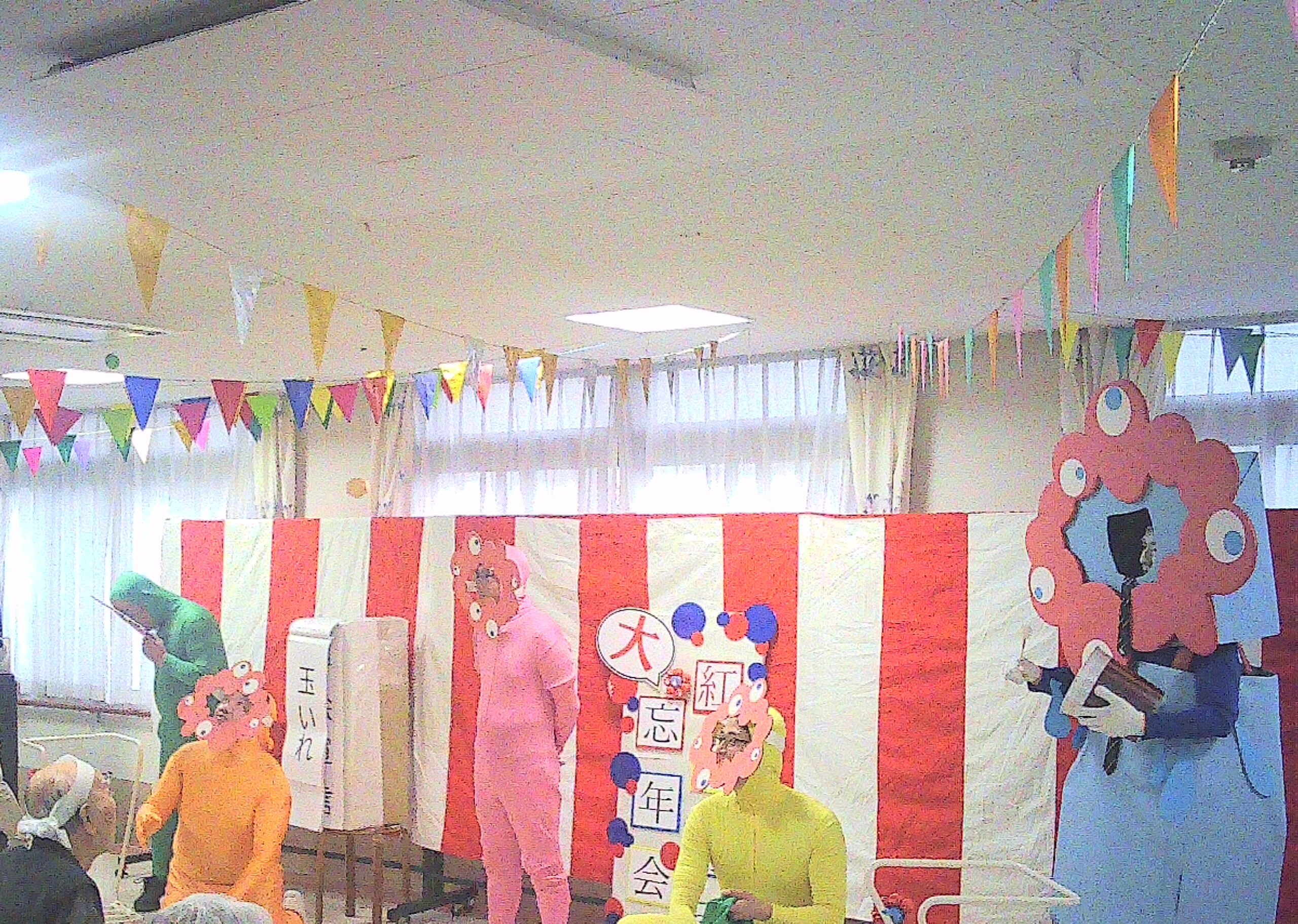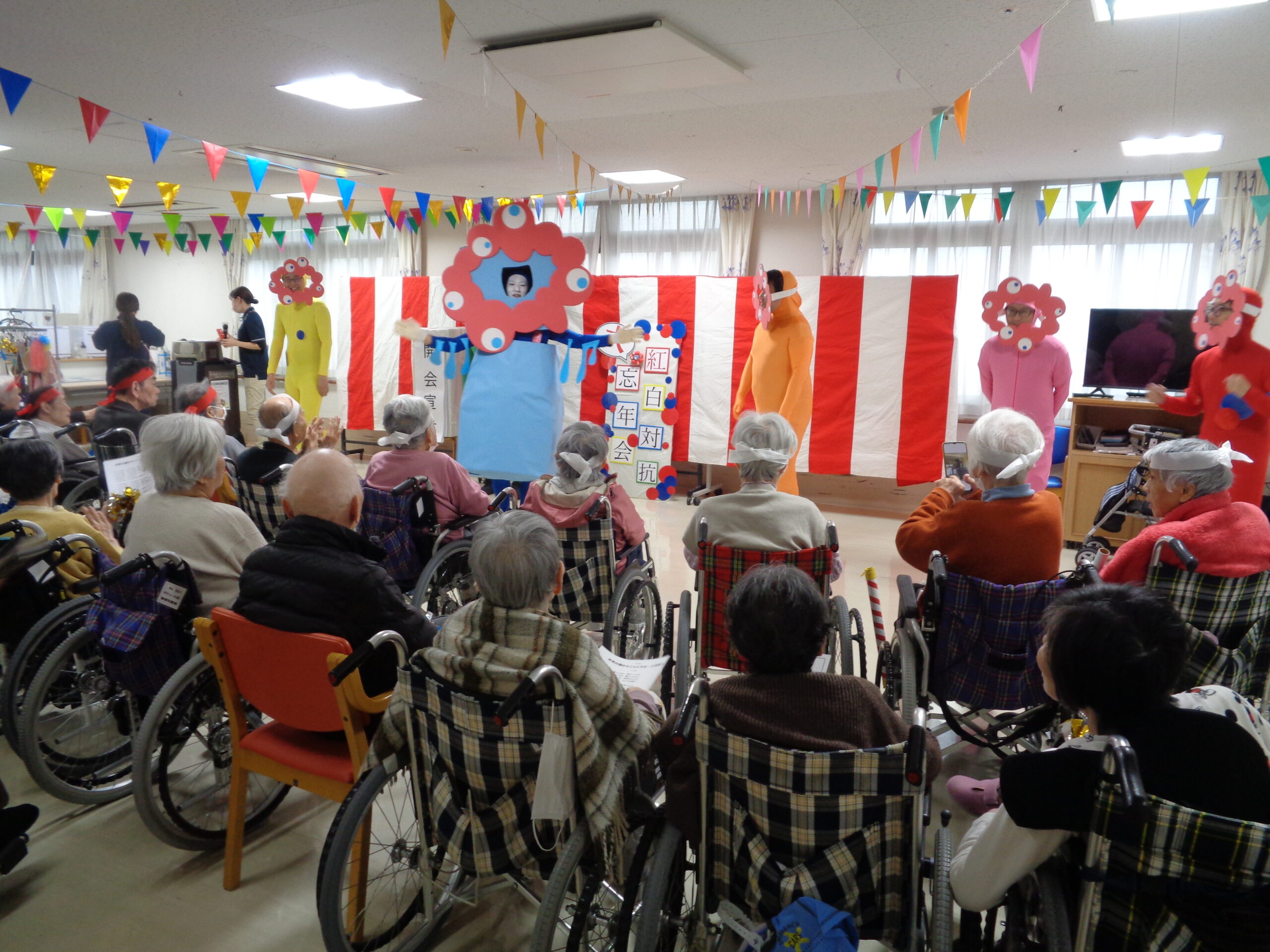 1年間の感謝を込めて、入所者様を対象に、12月3日に2階フロアー・12月5日に3階フロアーにて、紅白対抗大年忘会を実施いたしました。