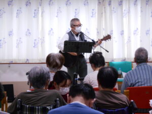 「上を向いて歩こう」・「瀬戸の花嫁」・「時の流れに身をまかせ」・「北酒場」・「いい日旅立ち」・「涙そうそう」・「愛燦燦」の中から、利用者様からのリクエストに答える形で、実施をされました。